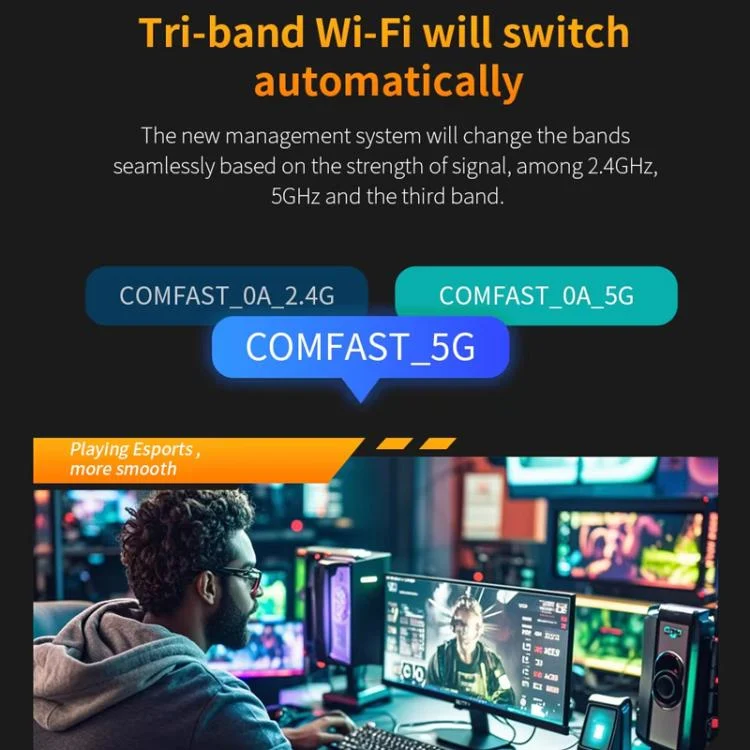 3. Support tri-band 2.4 & 5 & 6GHz;