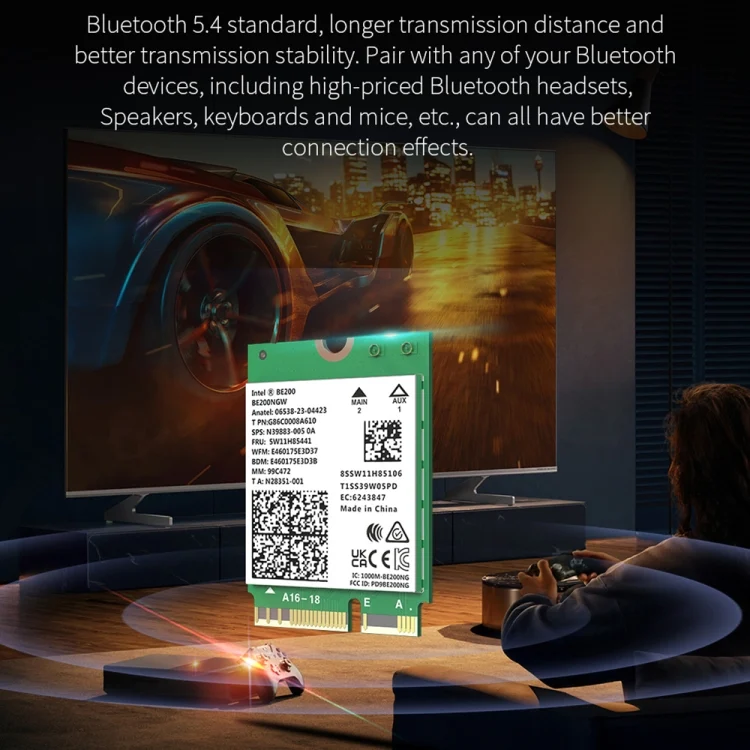 4. Using Intel Be200NGW chip, 8774Mbps wireless rate, Bluetooth 5.4, the maximum speed can reach 5.2Gbps.