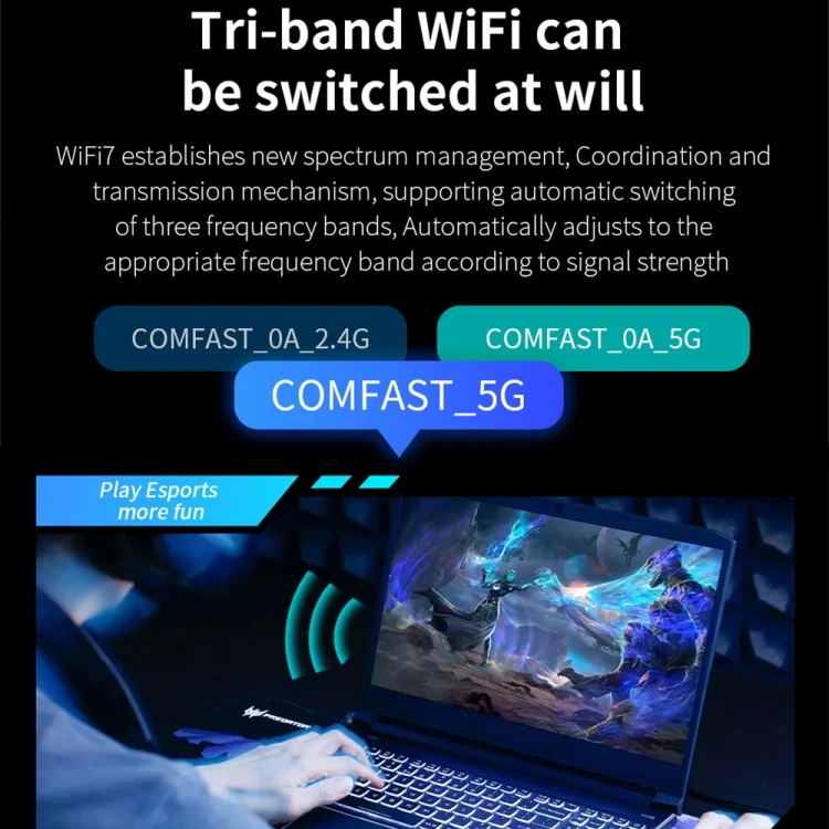 1. Using WiFi7 protocol to boost the network speed, lower latency, stronger anti-interference, and enjoy a fast Internet experience.