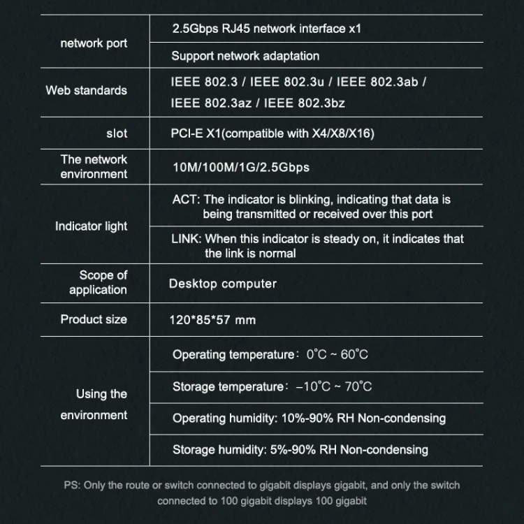 Interface: one 2.5Gbps RJ45 network interface, supporting network adaptation