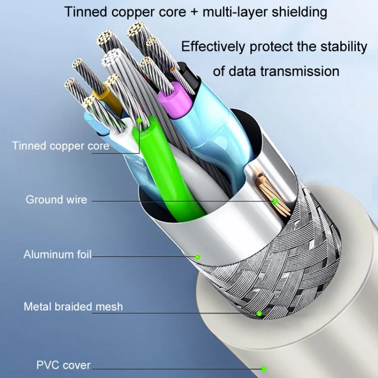 2. Tinned copper core + multi-layer shielding, anti-interference, effectively protect the stability of data transmission