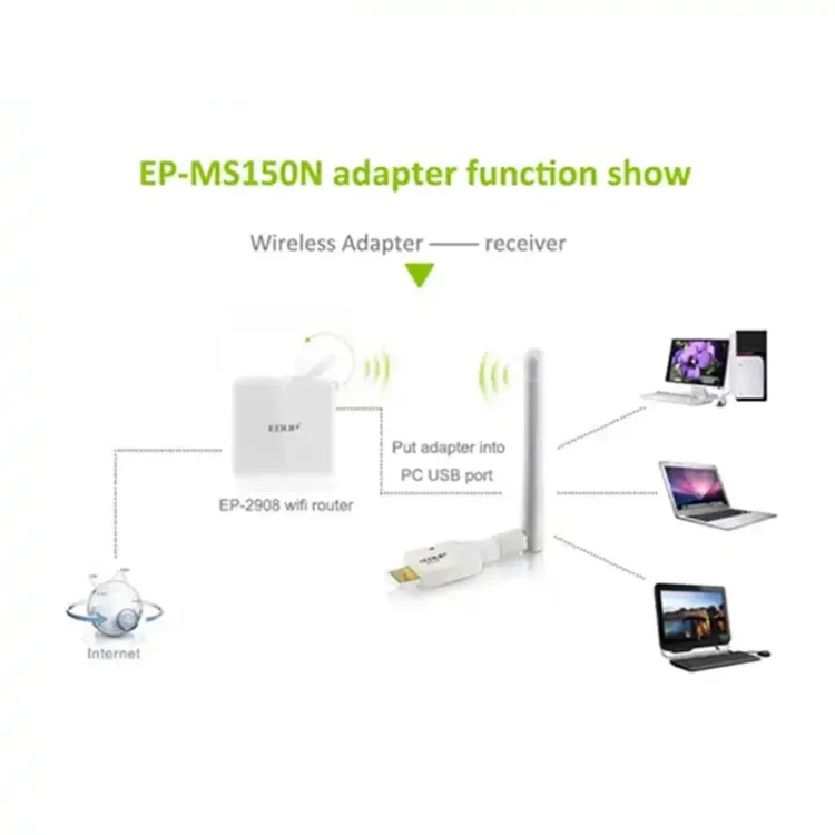 Mini High Power 802.11N 150M Wireless USB Adapter Card(White)