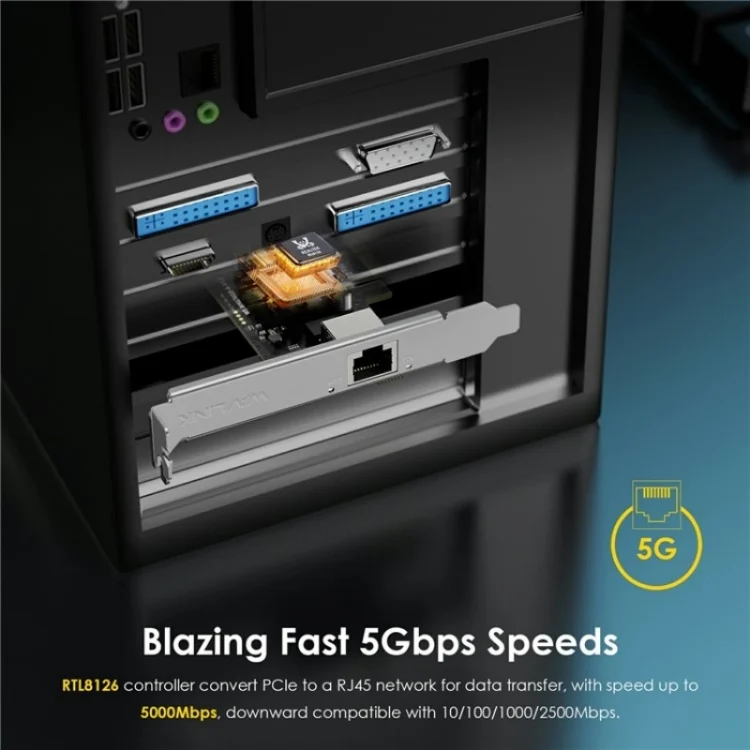WAVLINK NWP003 5Gbps RTL8126 Chip RJ45 Ethernet Adapter Pcie Network Card