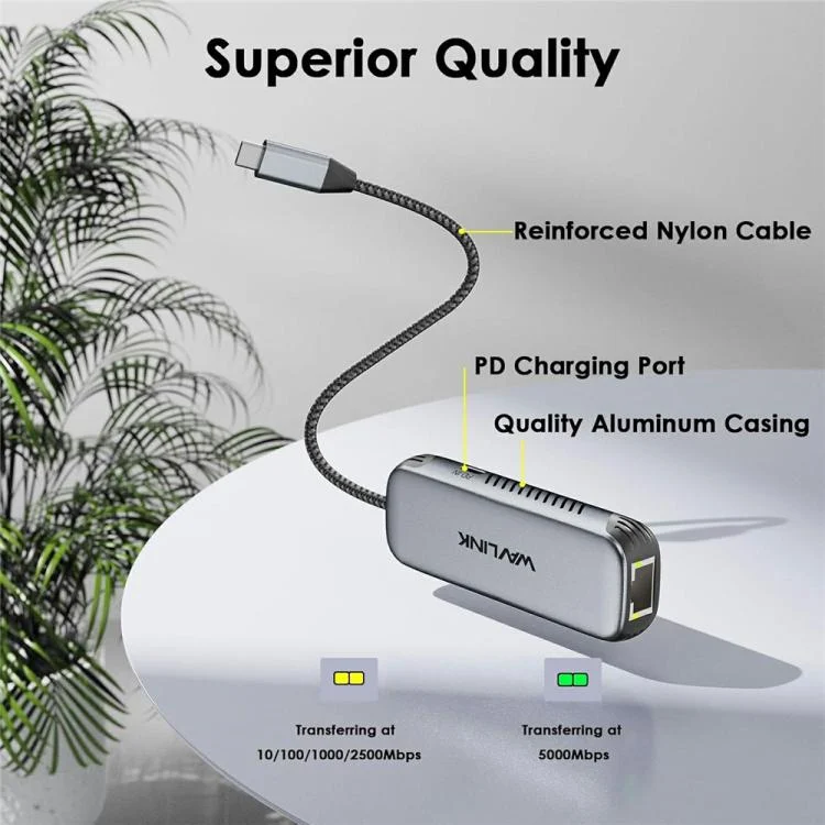 WAVLINK NWU340GD With 95W Charging Port 5Gbps USB-C to RJ45 Ethernet Adapter Converter
