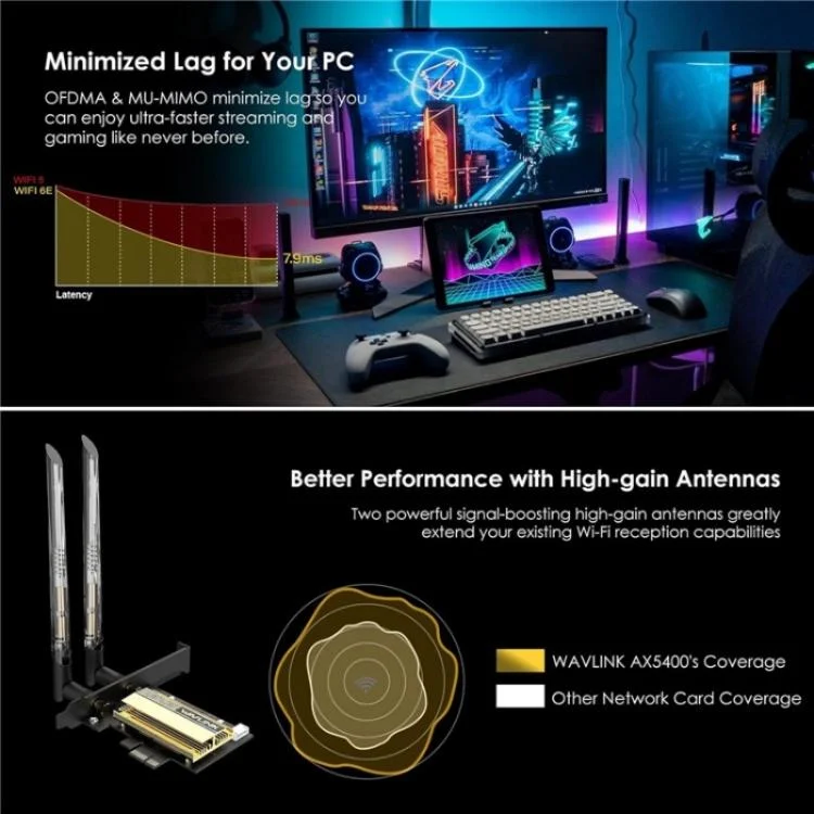 WAVLINK WN675X3-C WiFi 6E Pcie WiFi Network Card Adapter Triple Band AX210 AX5400