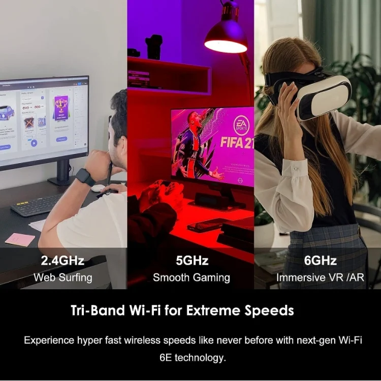 2.Transmission rate: 2.4GHz: 574Mbps, 5GHz: 2400Mbps, 6GHz: 2400Mbps