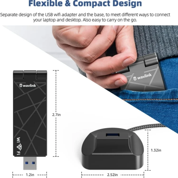 WAVLINK WN690X1 For PC AX1800 WiFi 6 Wireless-AX USB3.0 Adapter Dual Band Network Adapter