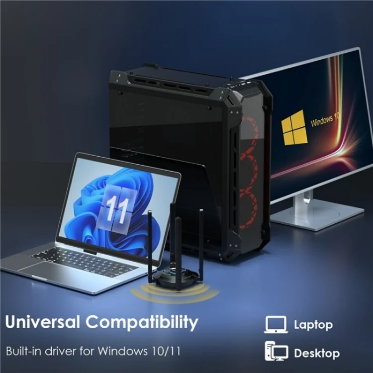 3.Universal Compatibility: Fully compatible with Windows 10/11 operating systems. Seamlessly integrates with any WiFi 6E or WiFi 6 router or mesh system, ensuring reliable and high-speed connectivity