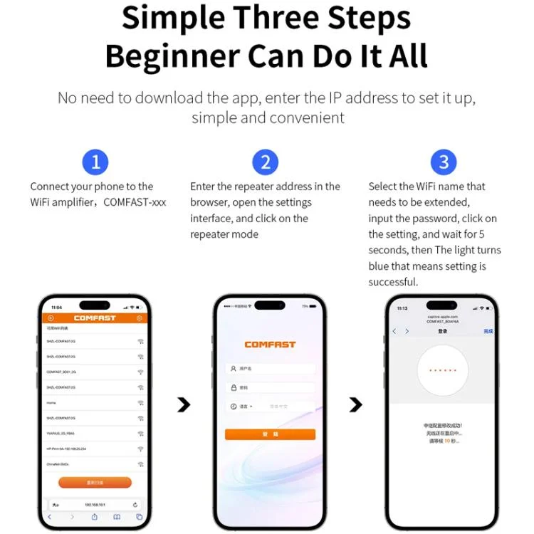 The product (CF-WR301S V3) is an economical 300Mbps wireless repeater with a dual-antenna design that effectively extends WiFi signals, helping users easily overcome WiFi blind spots. It’s suitable for WiFi extension in large apartments, duplexes, small and micro businesses, and neighboring homes, eliminating WiFi blind spots and achieving full-home WiFi coverage.