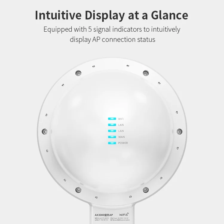 1. WIFI6 3000Mbps high-power omnidirectional outdoor AP, covering a diameter of 600 meters, with a recommended capacity of 258
