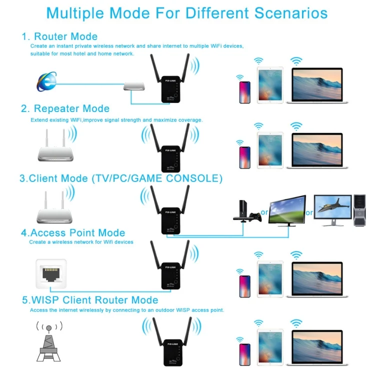 PIX-LINK 2.4G 300Mbps WiFi Signal Amplifier Wireless Router Dual Antenna Repeater
