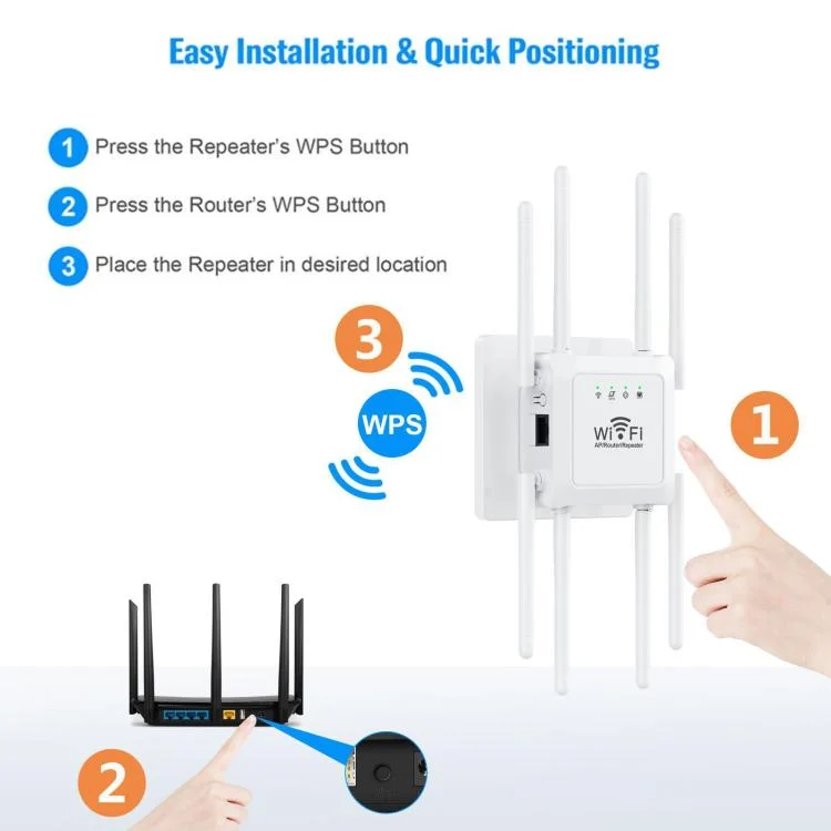 4. WPS function, only one-click pairing with a router with WPS function is required to automatically connect, no settings required