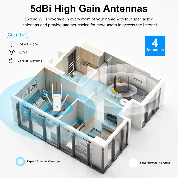 4. High-gain four antennas to improve transmission efficiency and increase coverage