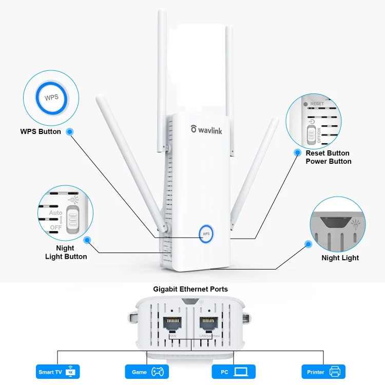 Wavlink AERIAL D4X AX1800Mbps Dual Frequency WiFi Signal Amplifier WiFi6 Extender