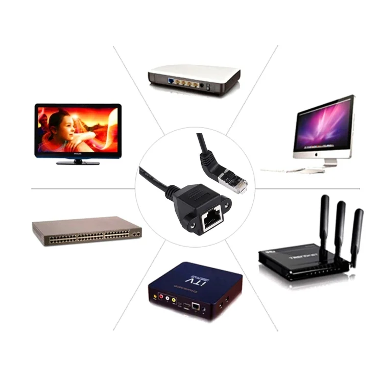 30cm RJ45 Male Bent Upward to RJ45 Female LAN Extension Cable