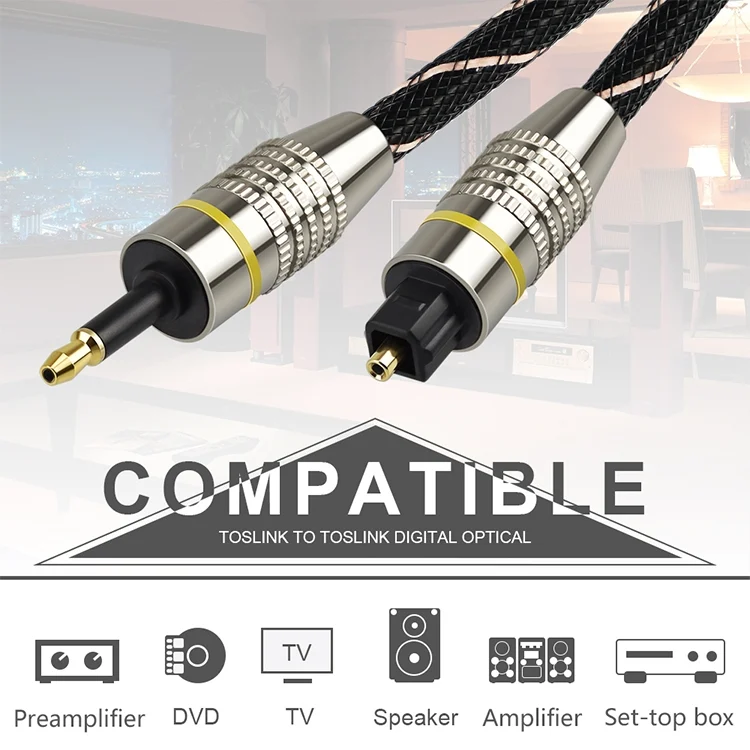 EMK Square Port to Round Port Set-top Box Digital Audio Optical Fiber Connecting Cable