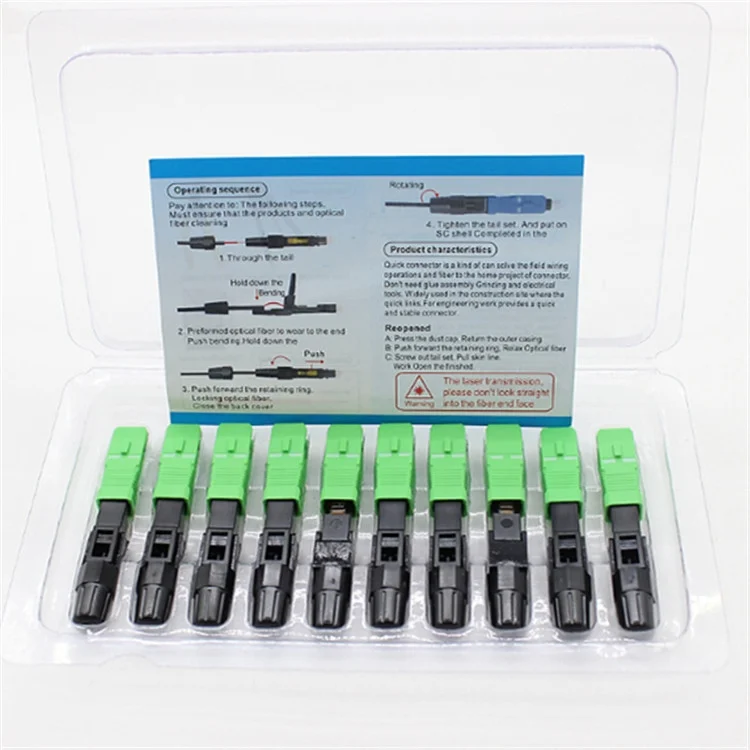 10 PCS FTTH SC APC Single-Mode Fiber Optic Quick Connector