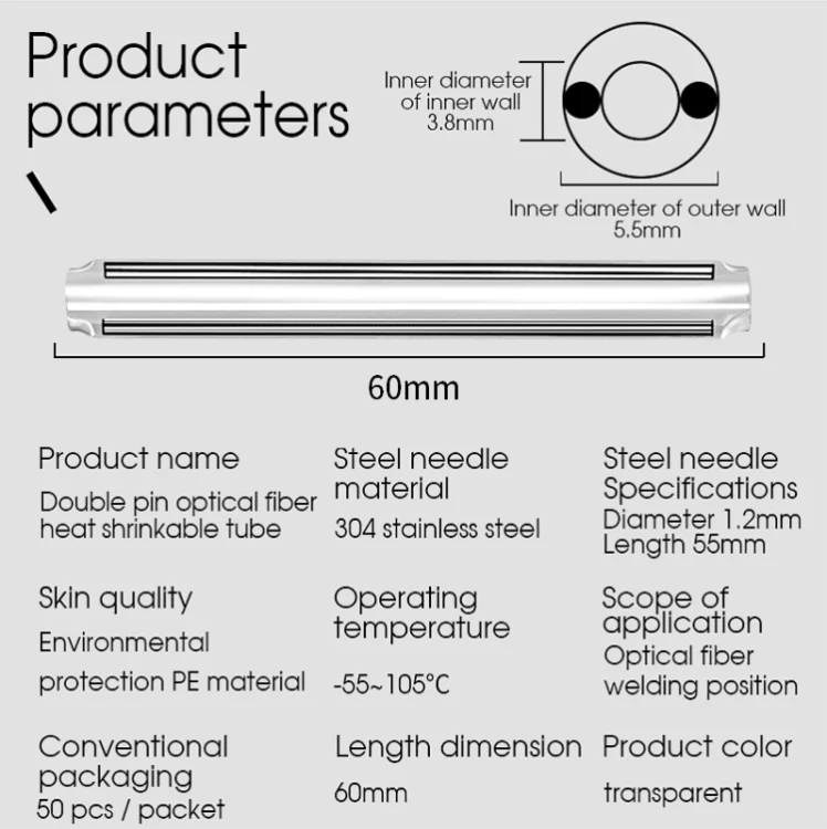 50pcs/pack 60mm Double -Pin Leather Thread Optical Fiber Heat Shrinkable Tube Optical Hot Melt Tube