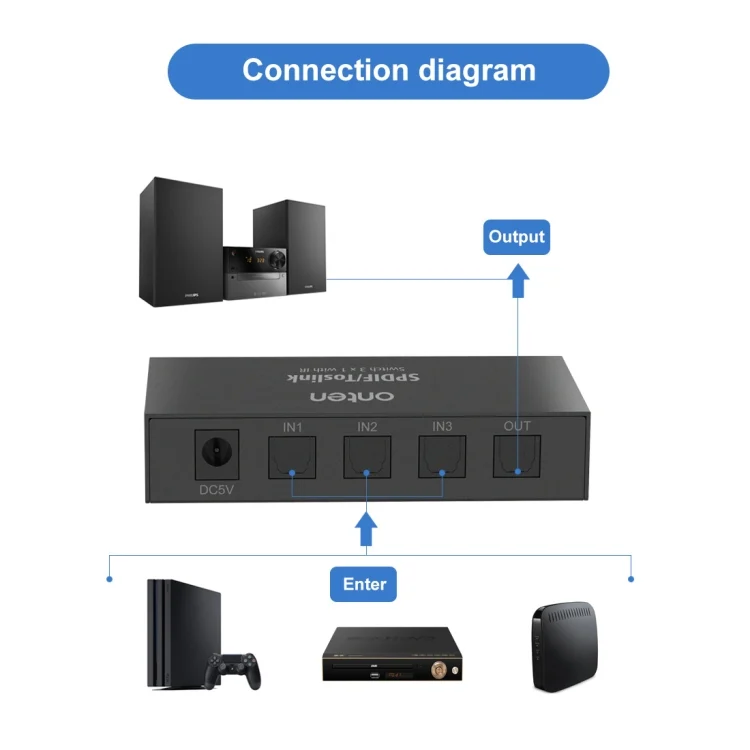 Onten 37507 Digital Optical Audio 3 In 1 Out Switcher Speaker Connector