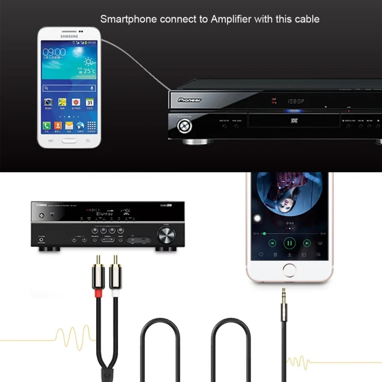 4. 3.5mm MP3 iPhone to RCA Audio cable is compatible with iPhone, iPod, iPad, tablets including Google Nexus, Samsung, MP3 players, CD players, laptops, tablets and any other digital device with a 3.5mm audio jack, And home audio systems, like amplifier or receiver with RCA (RCA white/left and red/right sockets) jacks for audio inputs.