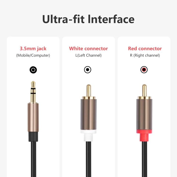 1. Suitable for inserting 3.5mm connector into the headphone jack of mobile devices such as mobile phones, computers, tablet PC, TVs, and 2 RCA connectors into the port of the audio system. It is a good choice for professional or home audio connection.