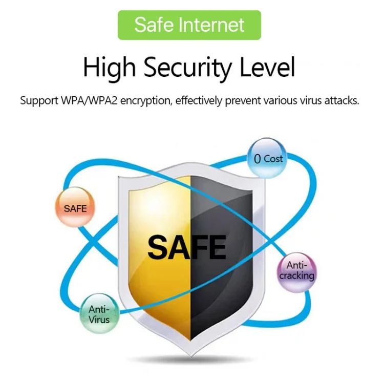1. High security level, support WPA/WPA2 encryption, effectively prevent various virus attacks