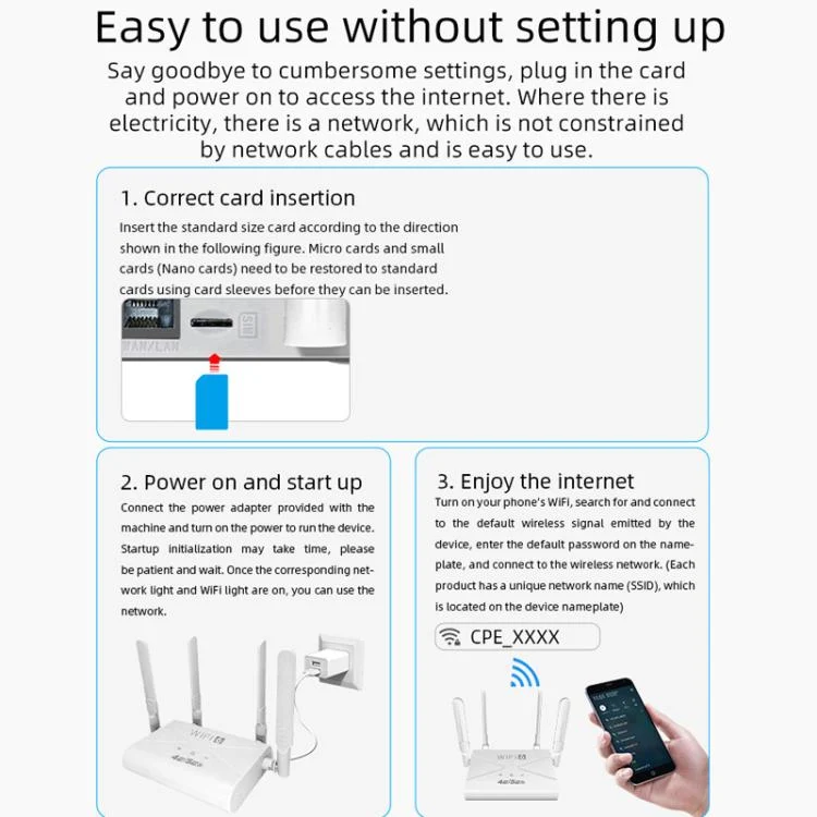 7. Easy to use, no setup required. Say goodbye to complicated setup processes—simply insert the card and turn on the power to connect to the network, making it very convenient to use