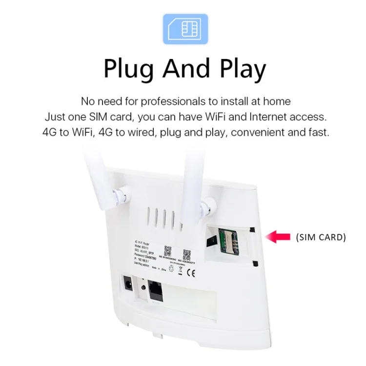 4G CPE SIM Card Mobile Wireless Router Antenna Detachable, EU Plug