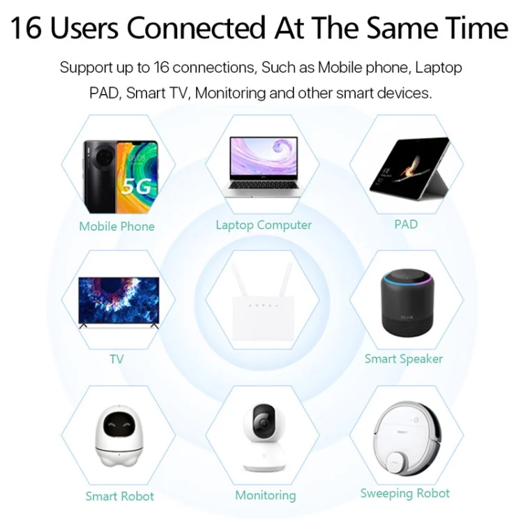 4. Support up to 16-way connection, such as mobile phones, laptops, smart TVs, surveillance and other smart devices