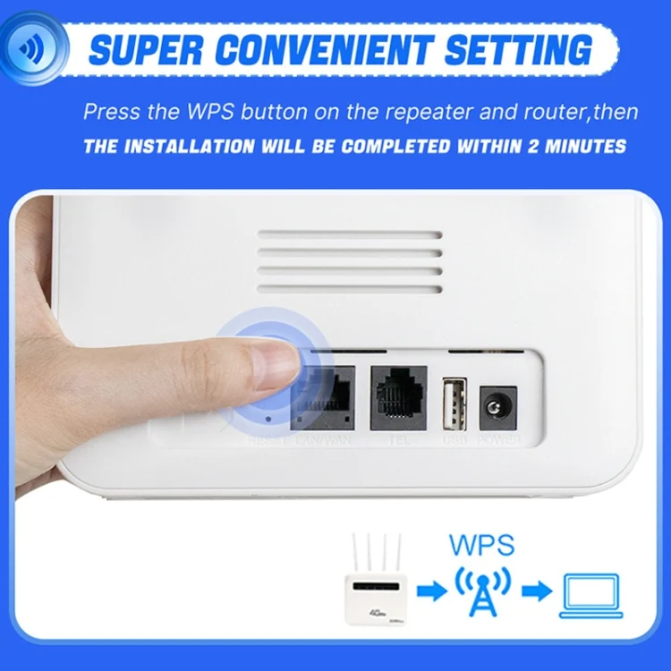 1. Easy to set up, press the WPS button on the repeater and router, the installation will be completed within 2 minutes
