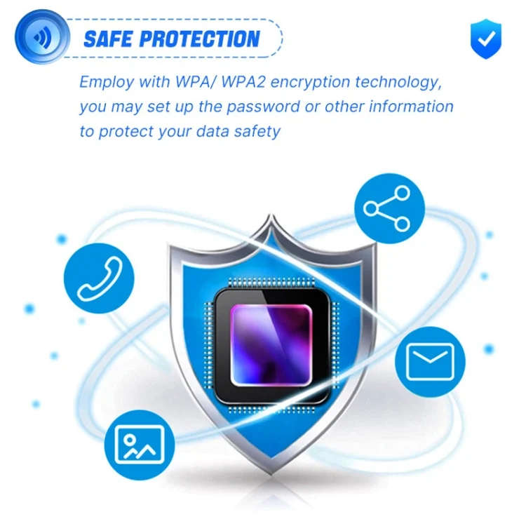 4. WPA/ WPA2 encryption technology, you can set password or other information to protect data security