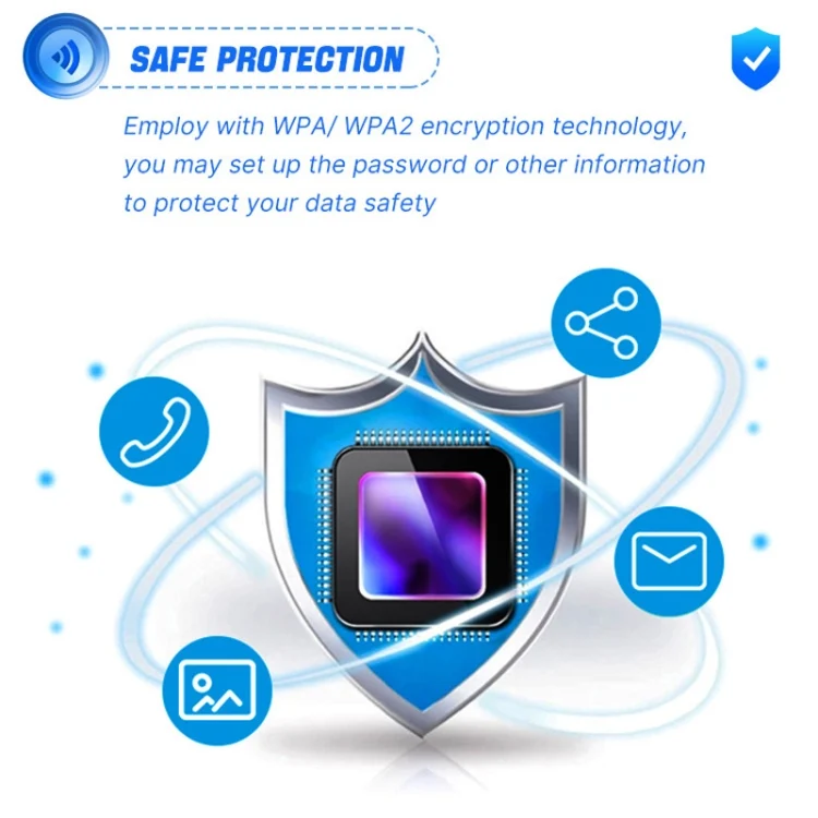 5. Adopt WPA/ WPA2 encryption technology, you can set password or other information to protect data security