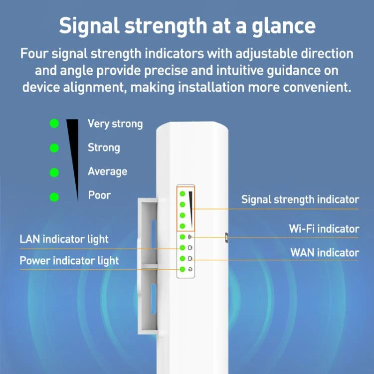 8. Indicators: Power, WAN, LAN, WiFi, Signal Strength