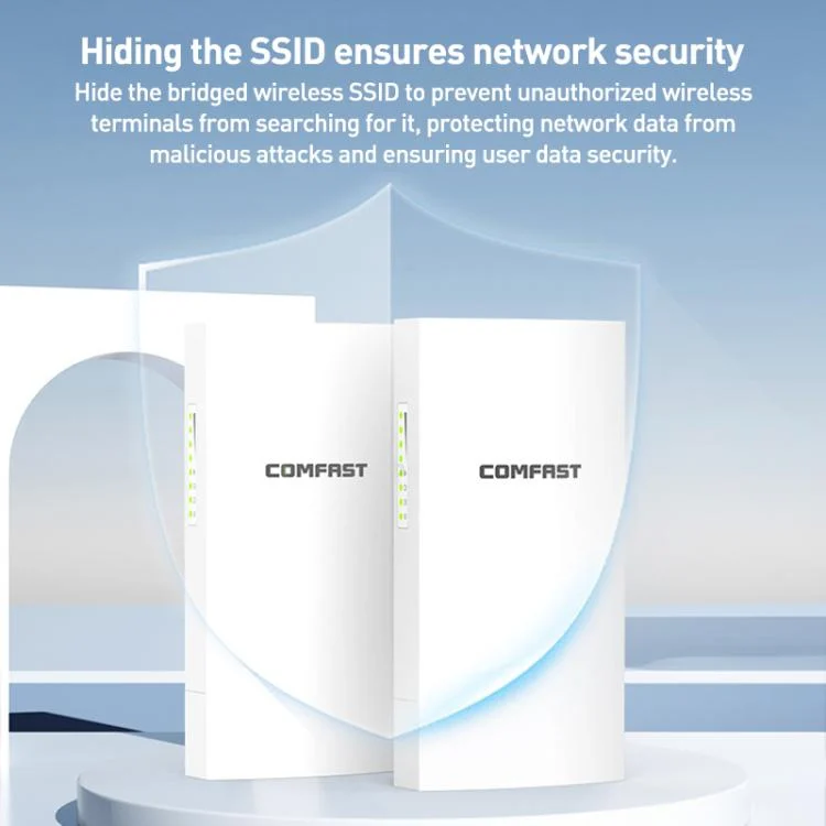 7. Hide SSID to ensure network security: The bridged wireless SSID can be hidden to prevent unauthorized wireless terminals from searching for the wireless SSID, protecting network data from malicious attacks and ensuring user data security.