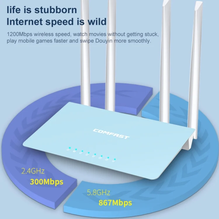3. Transmission rate: 2.4GHz: 300Mbps; 5.8GHz: 867Mbps