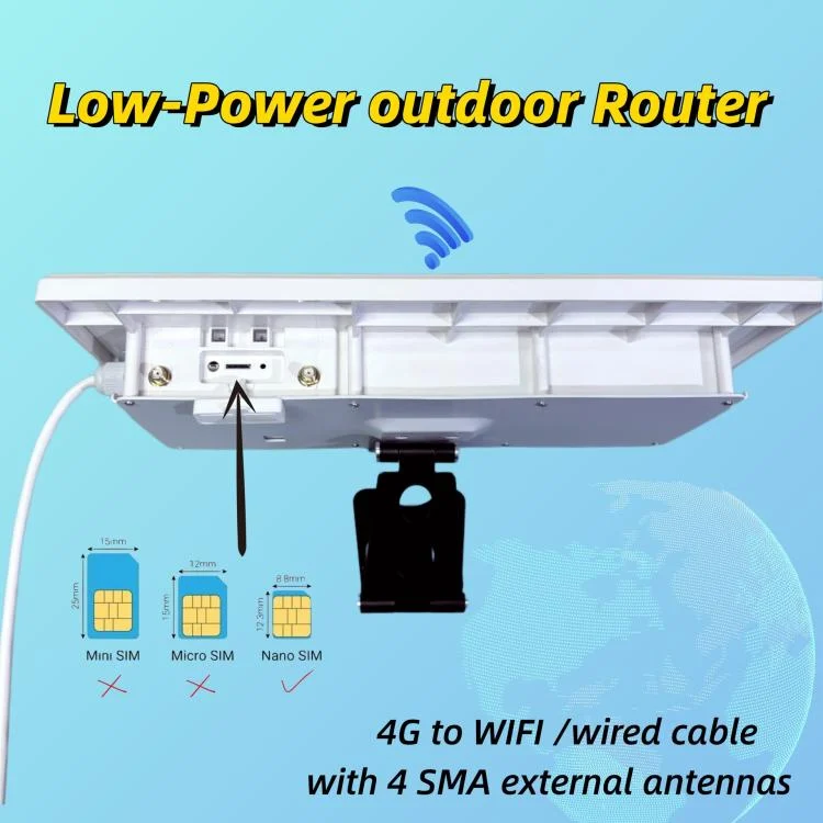 EAU 4G Solar SIM Card WiFi 6 Router Waterproof Outdoor 4G To WiFi Cable