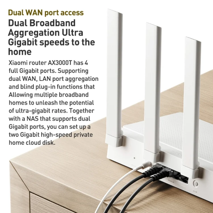 Original Xiaomi AX3000T 2.4GHz/5GHz Dual-band 1.3GHz CPU Router Supports NFC Connection, US Plug