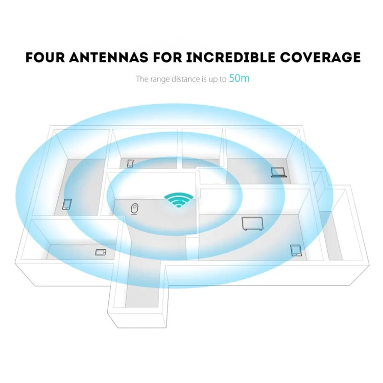 6. The wireless broadband speed can reach 300Mbps, and is backward compatible with 802.11b/g products. It provides greater compatibility with traditional 1T1R, 2T2R MIMO
