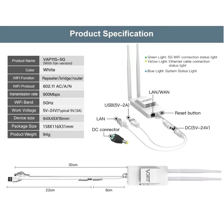 VONETS VAP11S-5G Mini Wireless Bridge 900Mbp WiFi Repeater with 2 Antennas & Fan