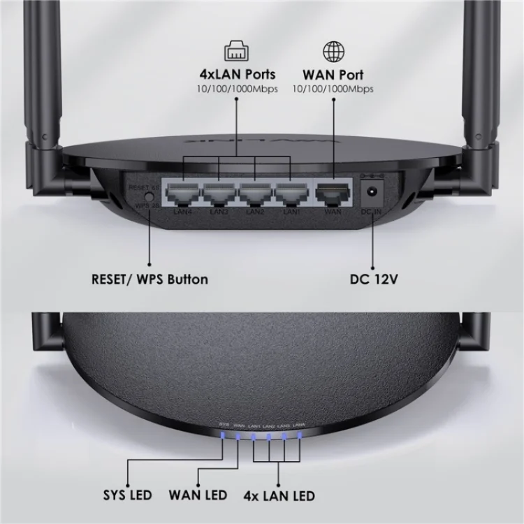 2.Interfaces: 1 WAN (10/100/1000Mbps), 4 LAN (10/100/1000Mbps), 1 DC in, 1 Reset/WPS button