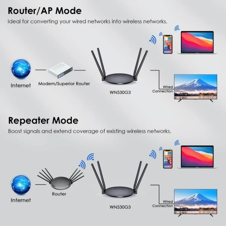 WAVLINK WN530G3 4x 5dBi Foldable Antenna AC1200 Dual Band Wireless Repeater Router