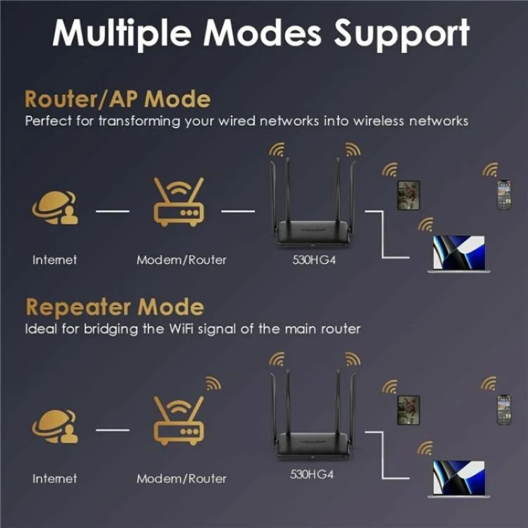 3.Multiple Operating Modes:Supports Router, Access Point, and Repeater modes, offering versatility for different network setups and extending Wi-Fi coverage in your home.