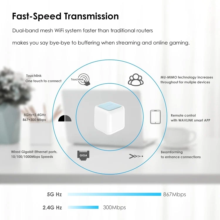 5.Mesh WiFi System chooses the fastest path for device connections and keeps your network running as fast as possible