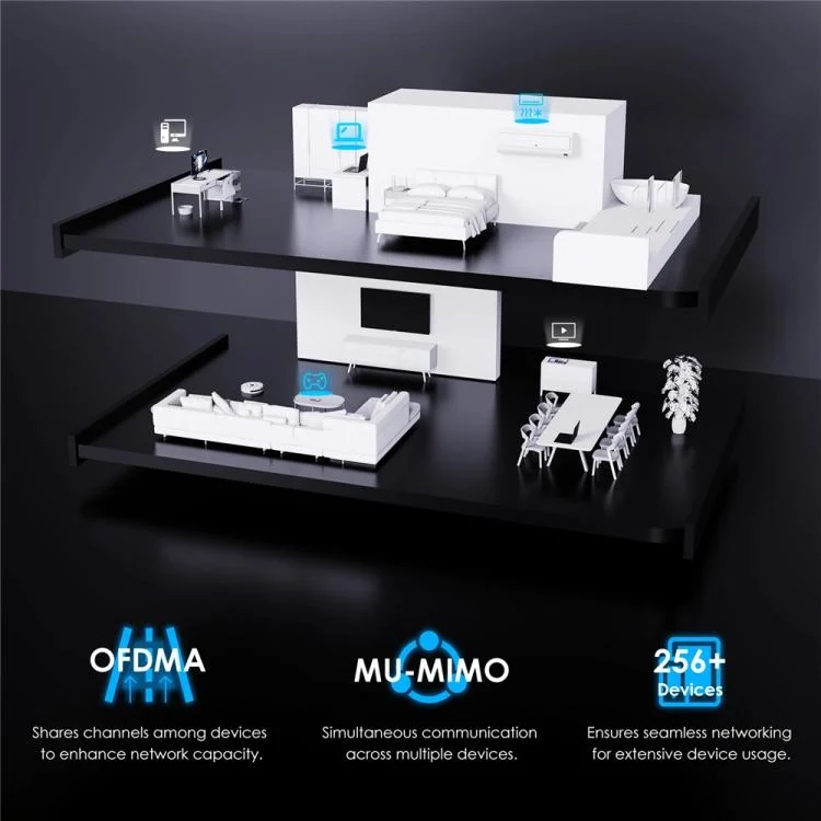 4.Reduced Latency:OFDMA+MU-MIMO technology minimizes network congestion, allowing up to 256 devices to share the network simultaneously with optimized performance and minimal lag.