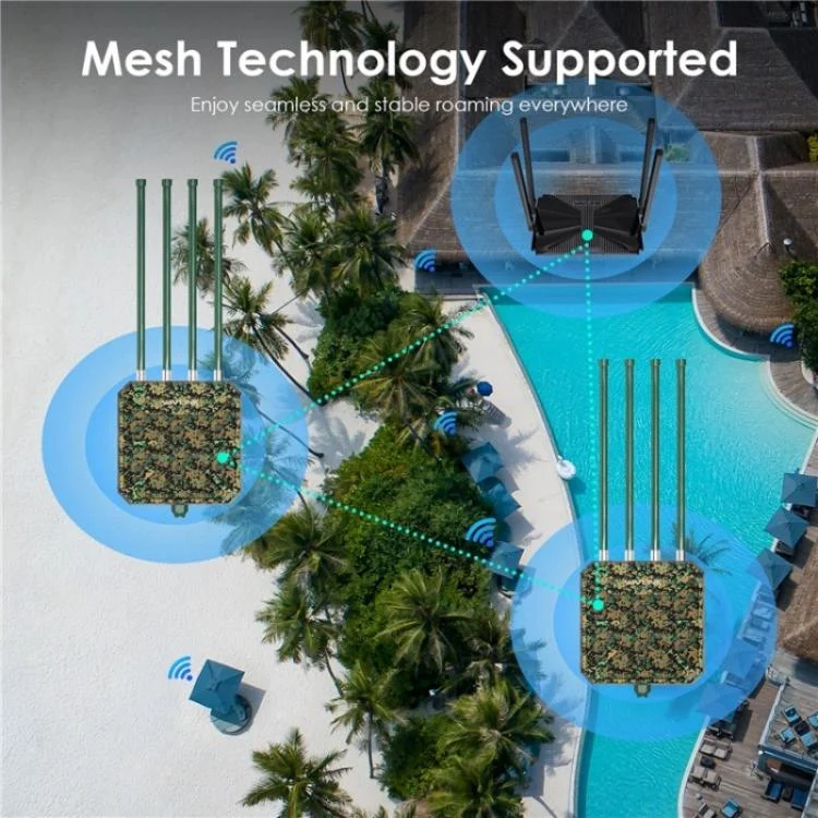5.Multiple modes, flexible use:Support mesh, AP, router, repeater, AP + repeater and other modes to meet your different needs, suitable for more outdoor connection scenarios. Router/AP mode is perfect for converting wired connections to wireless networks, while in mesh mode, you can enjoy seamless WiFi with a single network name and password