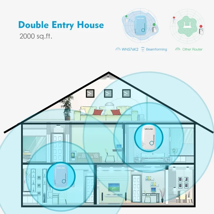 WAVLINK WN576K2 AC1200 Household WiFi Router Network Extender Dual Band Wireless Repeater (Blue)