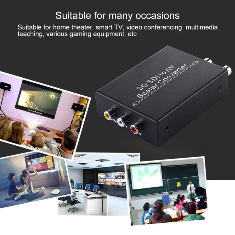 The SDI to AV converter allows SD-SDI, HD-SDI and 3G-SDI signals to be displayed on CRT or HDTV, while ensuring that the high bit rate of 2.970Gbit / s gives you fast signal transmission without any loss. For professionals, this means that it is now easier to distribute and extend your 3GSDI signal, and because of the built-in converter, you can display your work on your TV. In addition, due to the loop designed through 3G-SDI, users can enjoy SDI and AV at the same time.