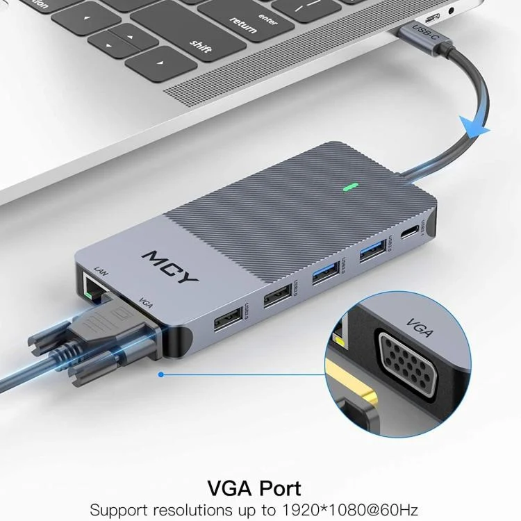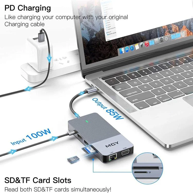 MCY 12-In-1 USB-C Hub With Triple Monitor Support (1000Mbps Lan+VGA+USB3.0/USB2.0+SD/TF+2 HDMI 4K 30Hz+85W PD)