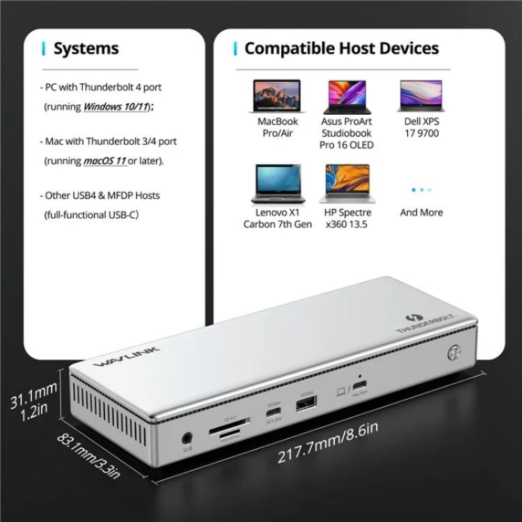 WAVLINK UTD45 96W Charging 8K / 4K Display Thunderbolt 4 Docking Station 13-in-1 Hub