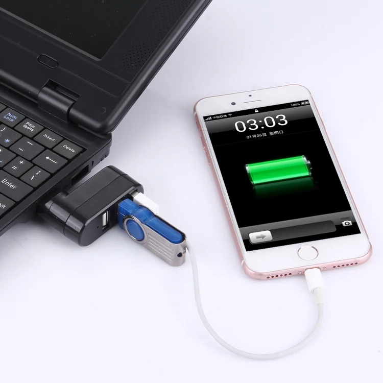 180 Degree Rotation USB Head 3 Ports USB 2.0 Portable HUB